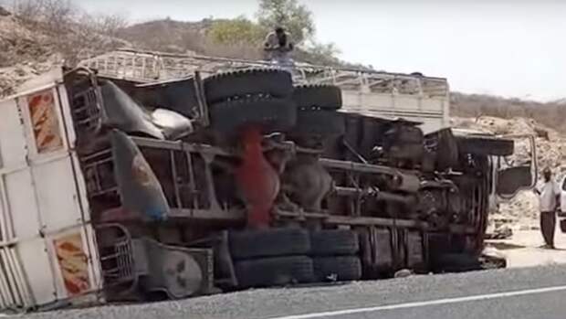 Как рассказал водитель, верблюд переходил дорогу слева направо. Мужчина попытался избежать столкновения и вывернул руль, но из-за большого веса грузовик опрокинулся.