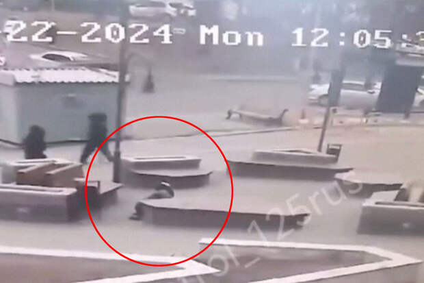Инцидент произошел возле торгового центра "Черемушки" во Владивостоке и попал на записи камер видеонаблюдения, на кадрах ролика сильный порыв ветра сбивает с ног женщину.