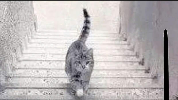 По мнению авторов статьи, в том случае, что если человеку кажется, что кошка идет по ступеням по лестнице вверх, то это признак того, что вы - оптимист.