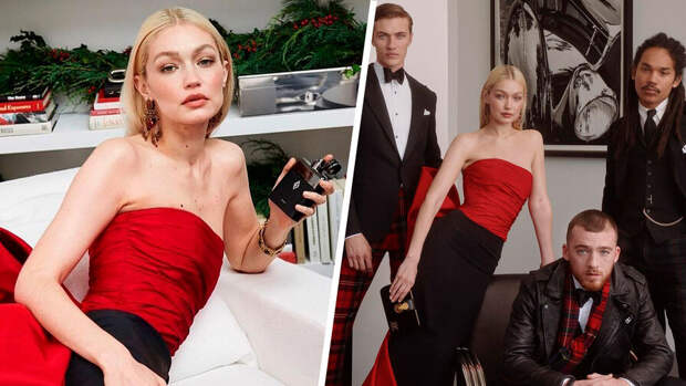 Для новогодней кампании Ralph Lauren Frangrances снялись сразу несколько звезд: Джиджи Хадид, Лаки Блю Смит, Ангус Клауд и Лука Саббат. Супермодель позировала в центре кадра.