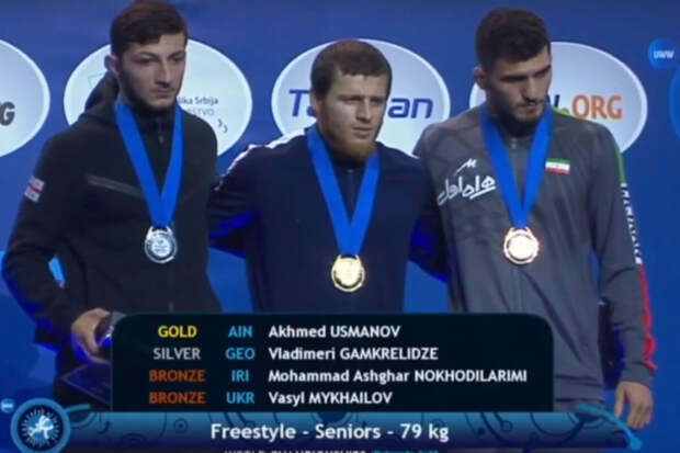 Серебряный призер Владимир Гамкрелидзе из Грузии и второй бронзовый призер Мохаммад Ноходи из Ирана поднялись на подиум к россиянину для совместного фото, украинец этого делать не стал.