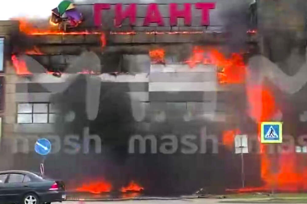 112: пламя на ТЦ "Гиант" в Калининграде перекинулось с автомобиля