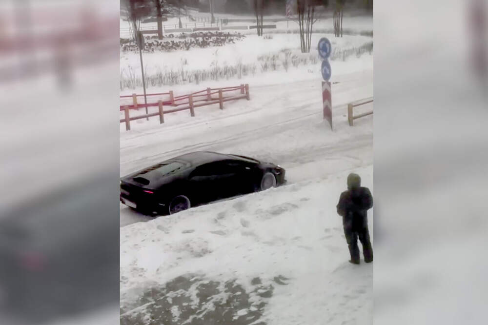 Lamborghini увяз в снегу в Москве в снежный шторм и попал на видео